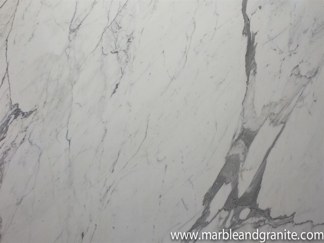 Calacatta marble is more rare than Carrara and is more white than gray. It has dramatic veins that result in thick, predominant patterns. It often has undertones of brown and gold.