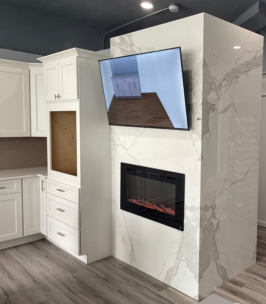 Elegant and Luxurious, this fireplace surround exudes sophistication. But can you tell? Is it Marble or Neolith?