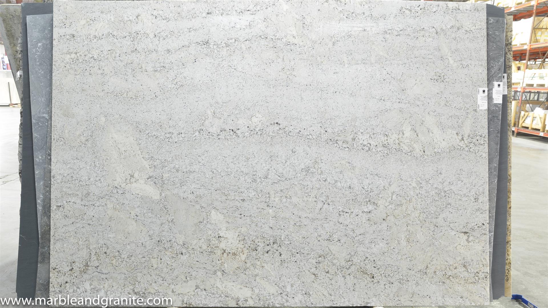 Just like white marble, white granite blends beautifully with just about any cabinet finish and any décor style. Here are a couple of choices you’ll find here at Marble & Granite, Inc.