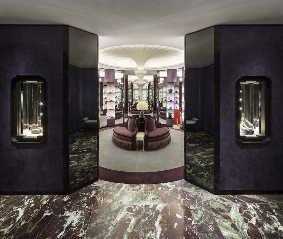 Rosso Fiorentino is the ideal marble for creating a dramatic focal point. While the look is classic, it can be glammed up as it is in this Fifth Avenue New York City boutique:
