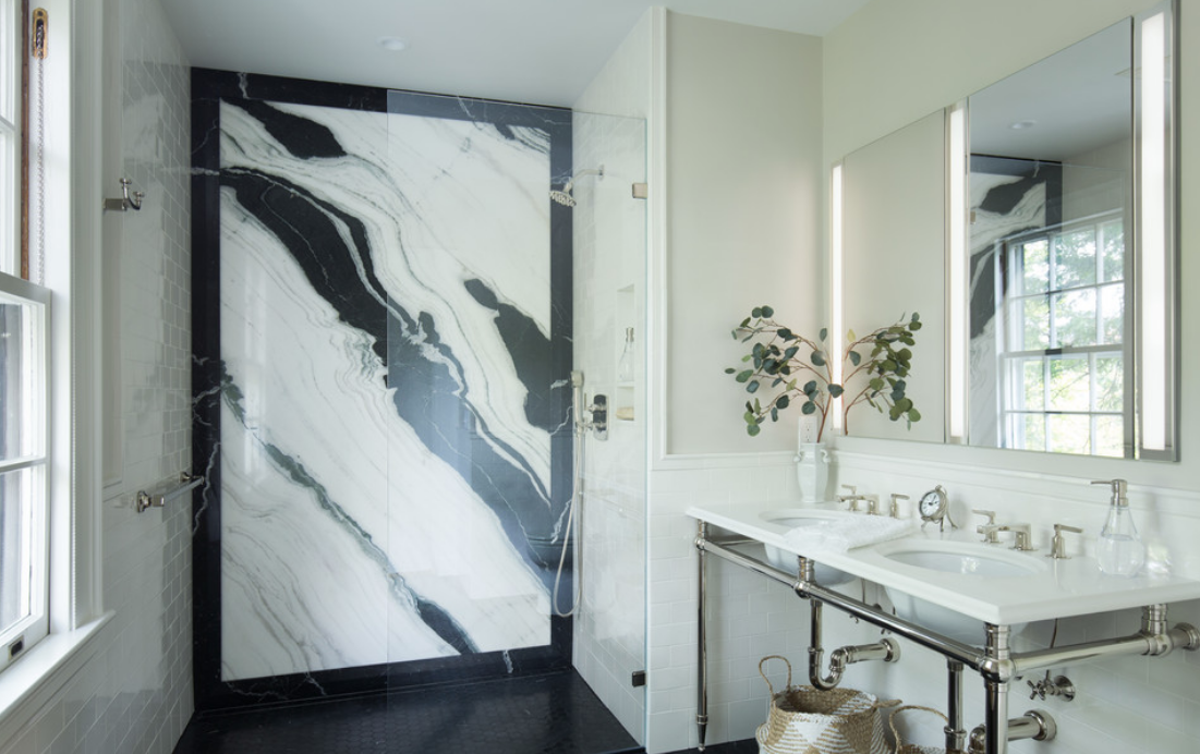 Glamorous marble shower by CW Design, LLC Instagram: cwdesignllc