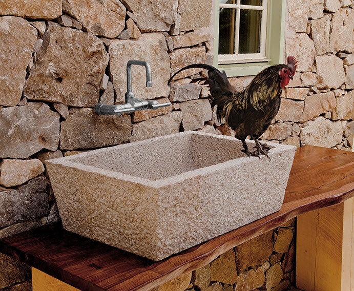 Farmhouse with Texture And combining both the industrial chic aesthetic with handmade sinks, hammered copper sinks from Native Trails bring timeless charm to the kitchen. Blending traditional design with contemporary sensibilities, it features a roomy capacity and distinctive texture, plus comes in a variety of sizes.