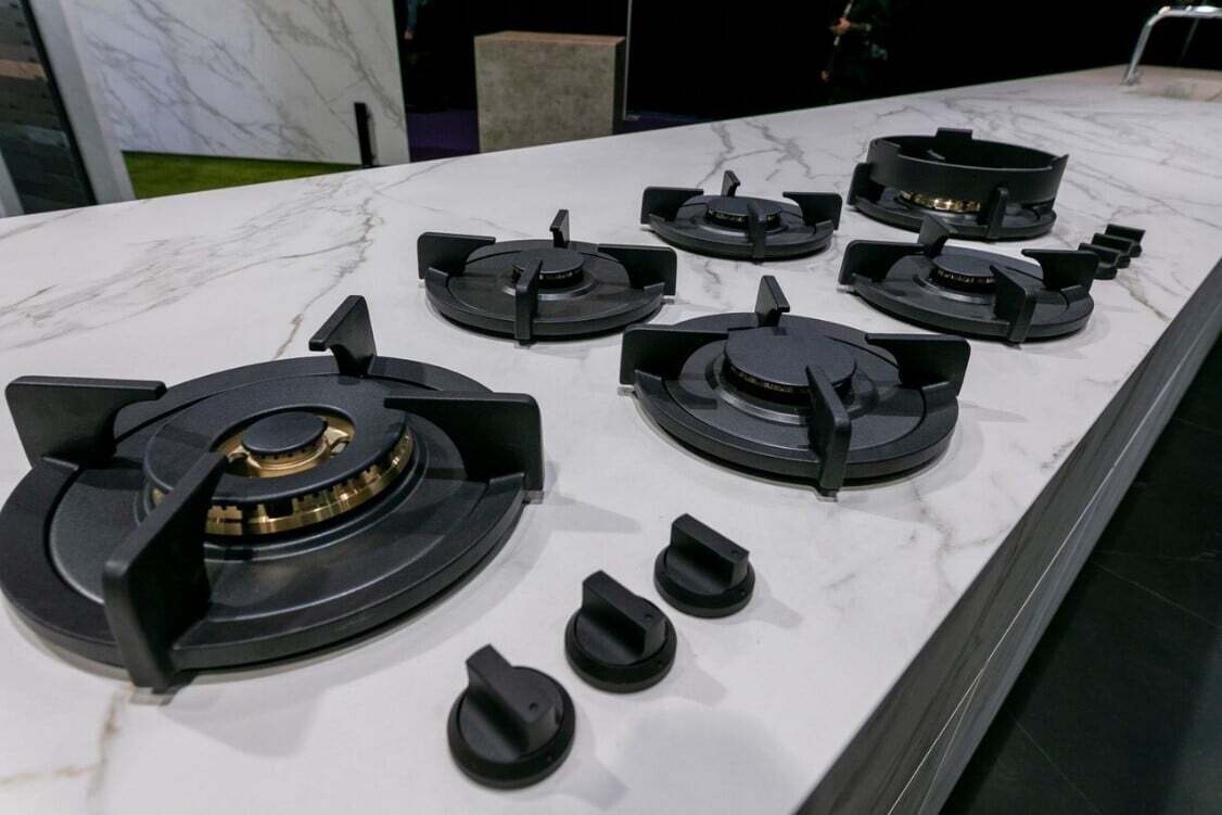 Neolith cooktop with the burners built right into the countertop surface!