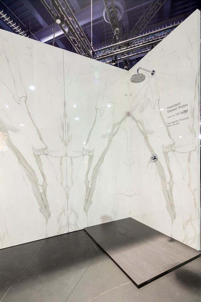 Neolith is perfect for shower floors and walls, as it’s large size allows for very few seams, so convenient and easy to keep clean.