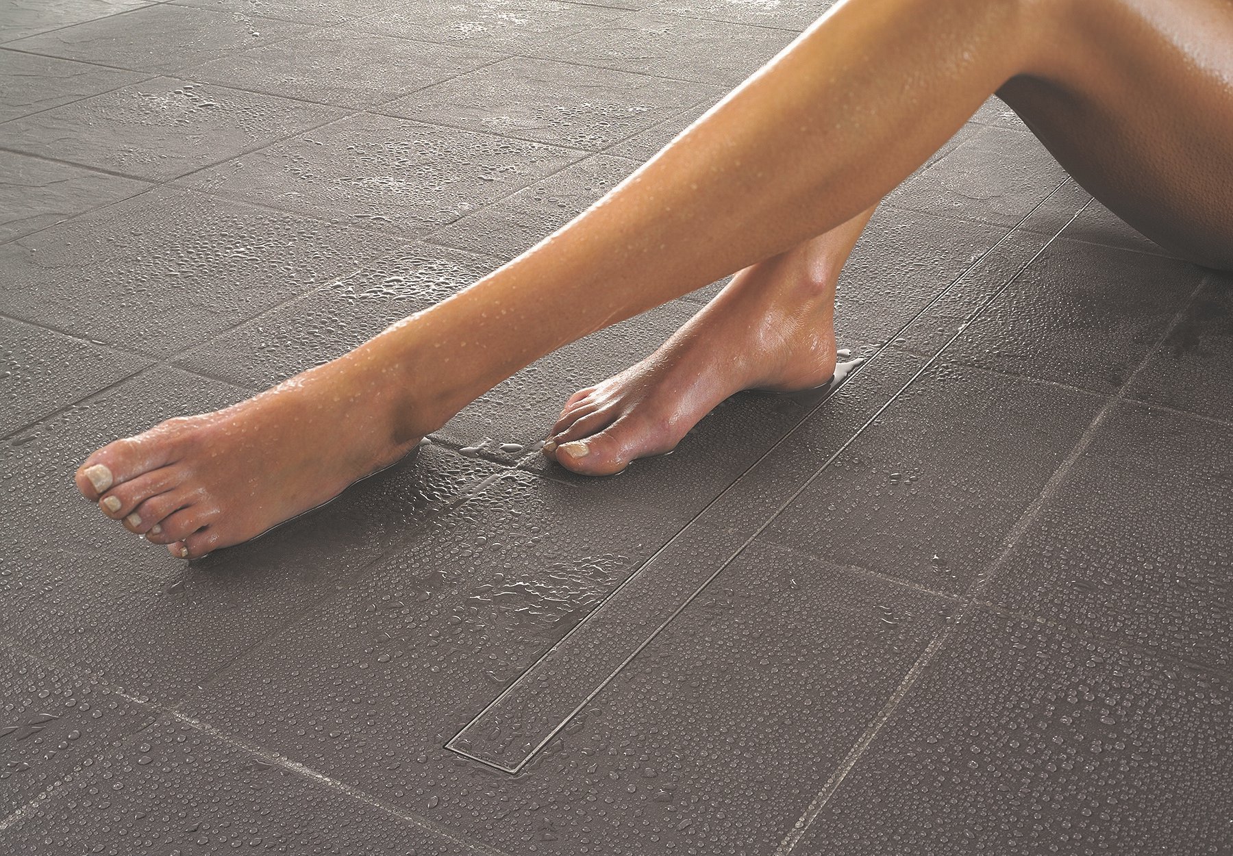 Similarly, StyleDrain Tile lets you inlay the same natural stone your using for the floor right into the drain cover. With no visible grate, the water appears to just vanish into the floor.